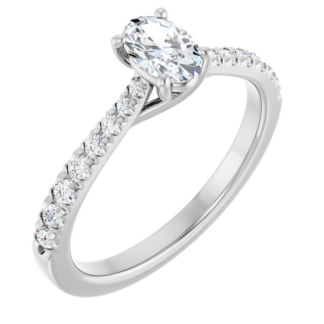 Isabelle Women's Oval and Round Natural Diamond Thin French-Set Engagement Ring | 14K Gold