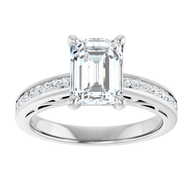 Ivy Women's 14K Gold Emerald and Round Cut Natural Diamond Accented Engagement Ring | Prong Channel Set | 5ct