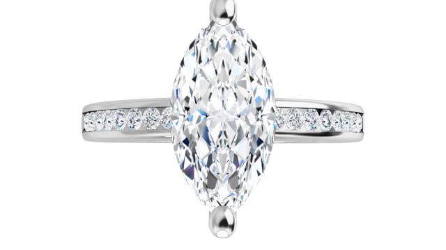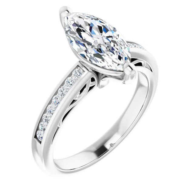 Ivy Women's 14K Gold Marquise and Round Cut Lab-Grown Diamond Accented Engagement Ring | Prong Channel Set | 2ct