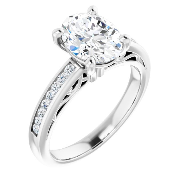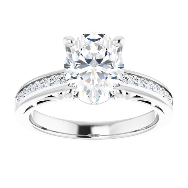 Ivy Women's 14K Gold Oval and Round Cut Natural Diamond Accented Engagement Ring | Prong Channel Set | 7ct