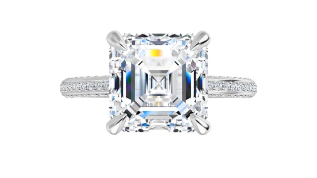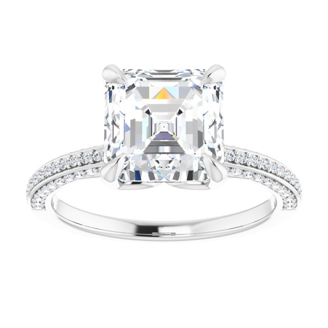 Jade Women's 14K Gold Asscher and Round Cut Natural Diamond Accented Engagement Ring | Claw Prong Pinpoint Set | 3ct
