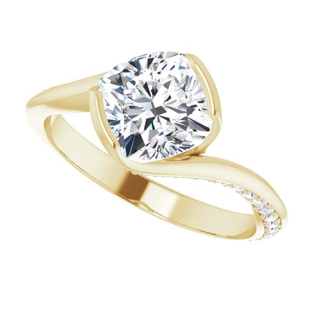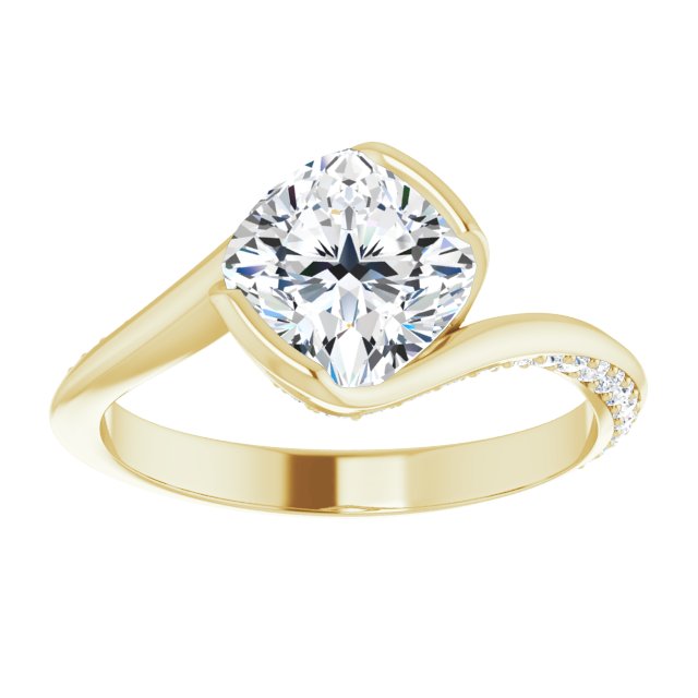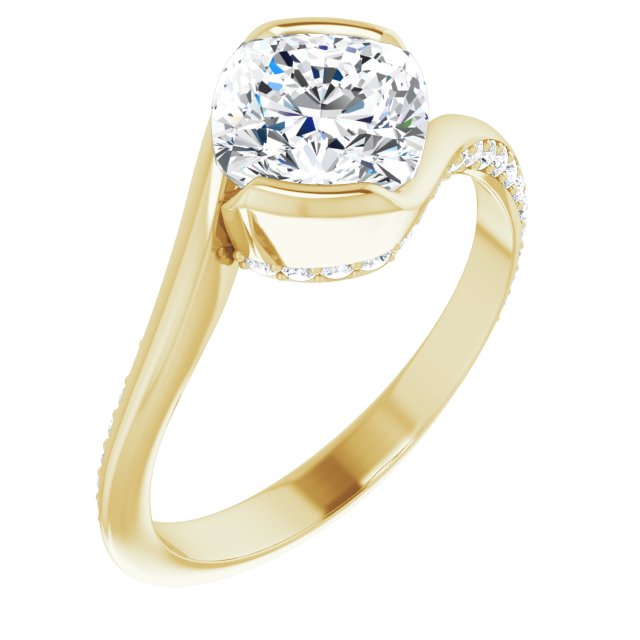Joanna Women's 14K Gold Cushion and Round Cut Lab-Grown Diamond Accented Engagement Ring | Bezel Pinpoint Set | 2ct