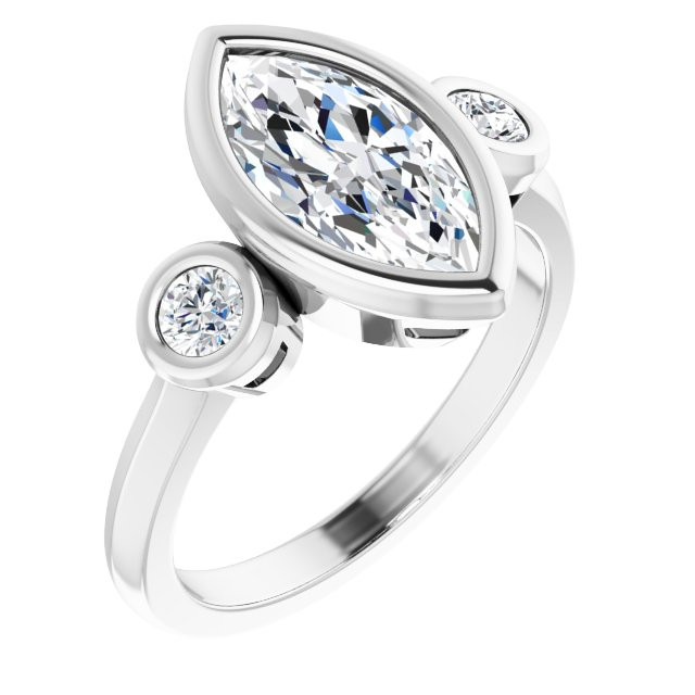 Jordyn Women's Marquise and Round Lab-Grown Diamond Bezel Thin Three-Stone Engagement Ring | 14K Gold | VS1 | 2ct