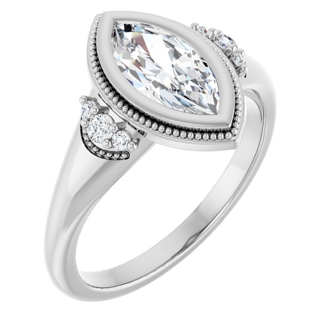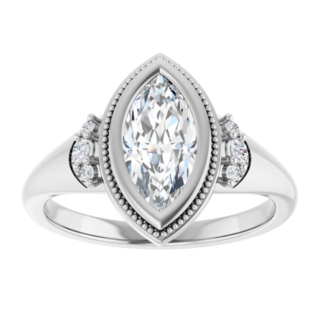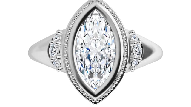Journee Women's Marquise and Round Natural Diamond Accented Bezel Thin Engagement Ring | 14K Gold | 1ct