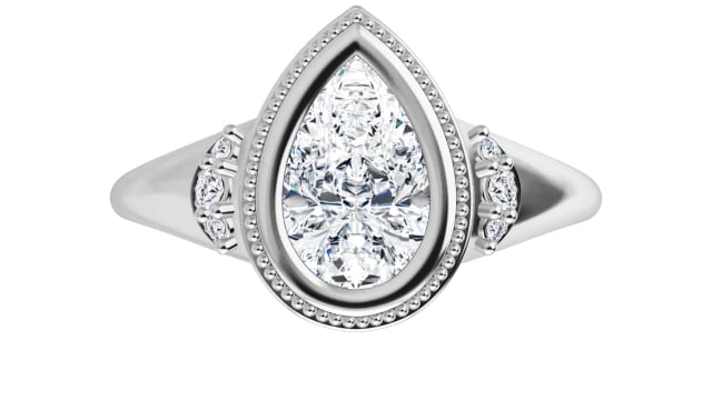 Journee Women's Pear and Round Natural Diamond Accented Bezel Thin Engagement Ring | 14K Gold | 1ct