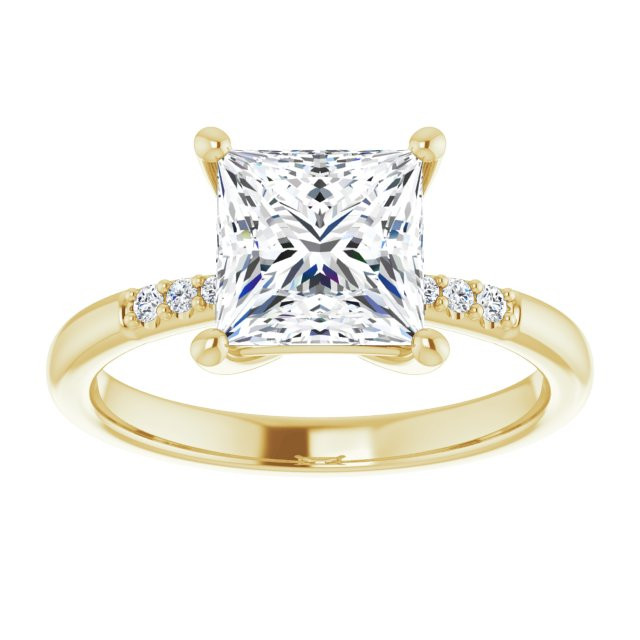 Juliana Women's 14K Gold Princess and Round Cut Lab-Grown Diamond Accented Thin Engagement Ring | Prong Shared Set | 2ct