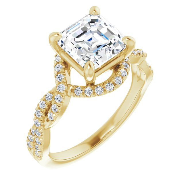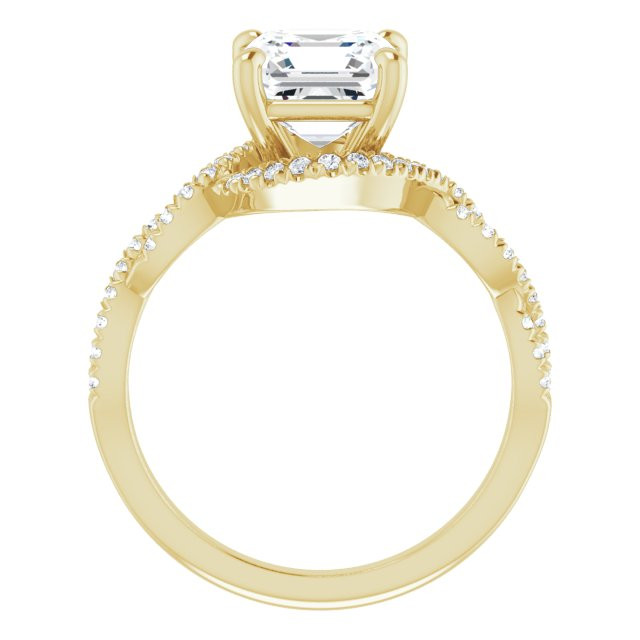 June Women's 14K Gold Asscher and Round Cut Lab-Grown Diamond Thin Engagement Ring | Prong French Set Set | 2ct
