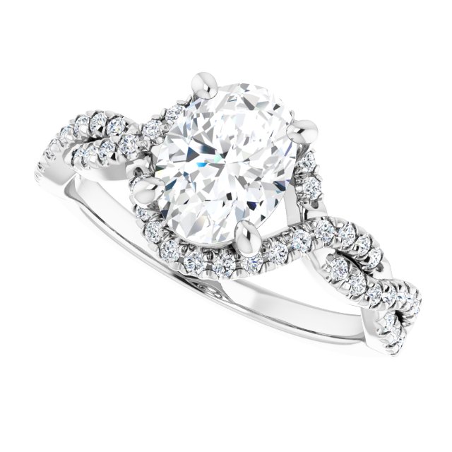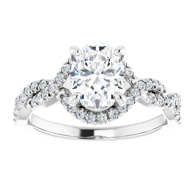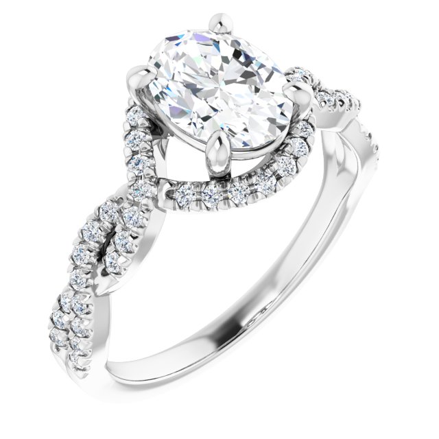 June Women's 14K Gold Oval and Round Cut Natural Diamond Engagement Ring | Prong French Set Set | 1ct