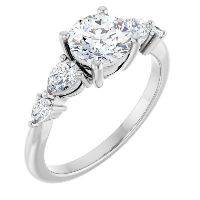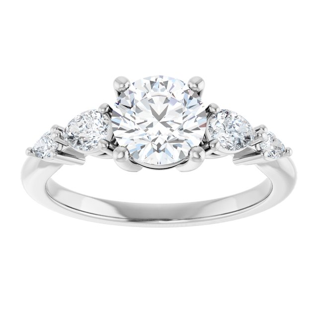 Kali Women's 14K Gold Pear and Round Cut Natural Diamond Accented Thin Engagement Ring | Prong Set | 1ct