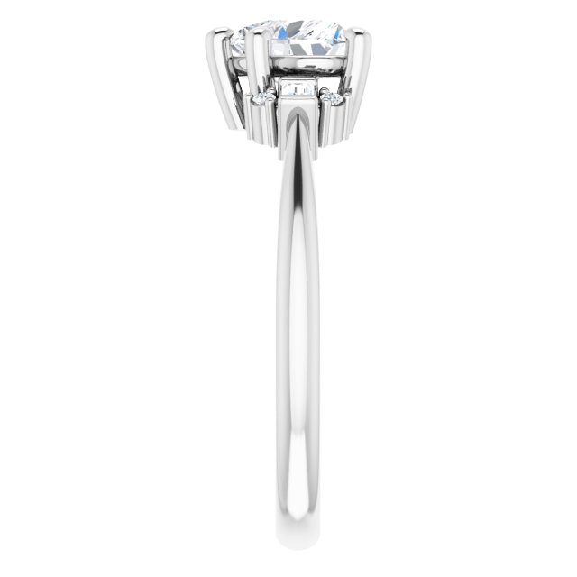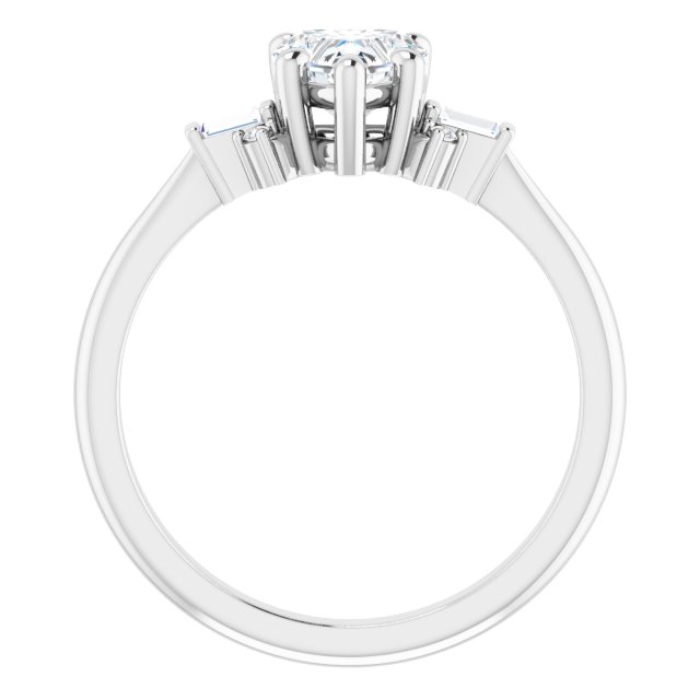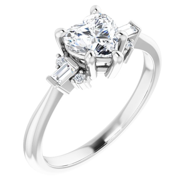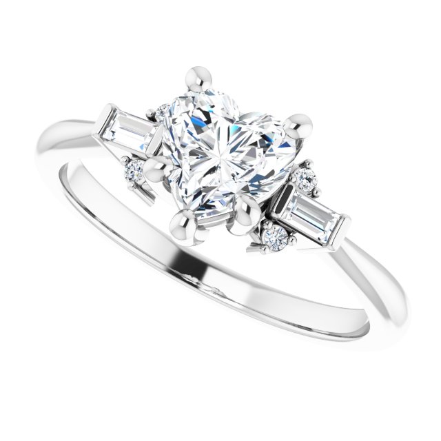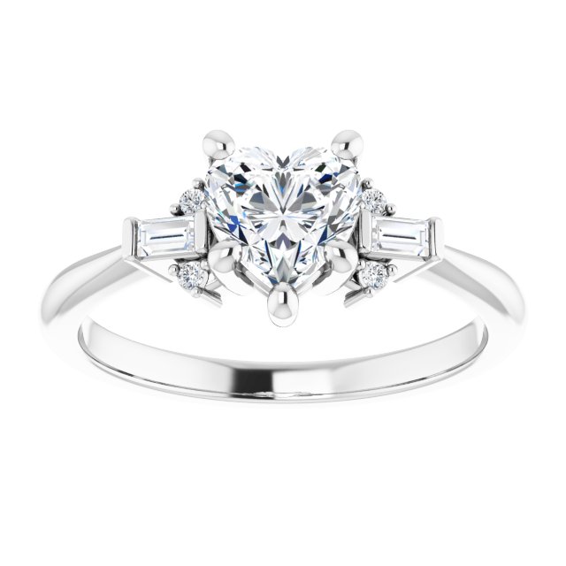 Kamila Women's 14K Gold Straight Baguette and Heart and Round Cut Natural Diamond Accented Thin Engagement Ring | Prong Bar Set