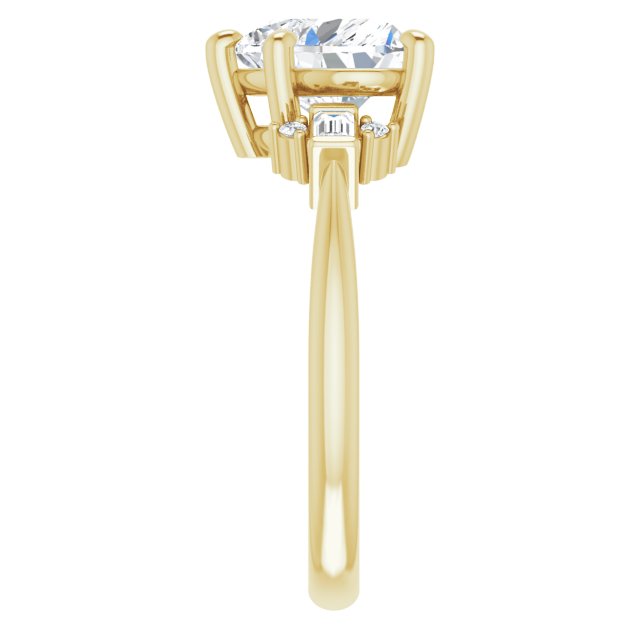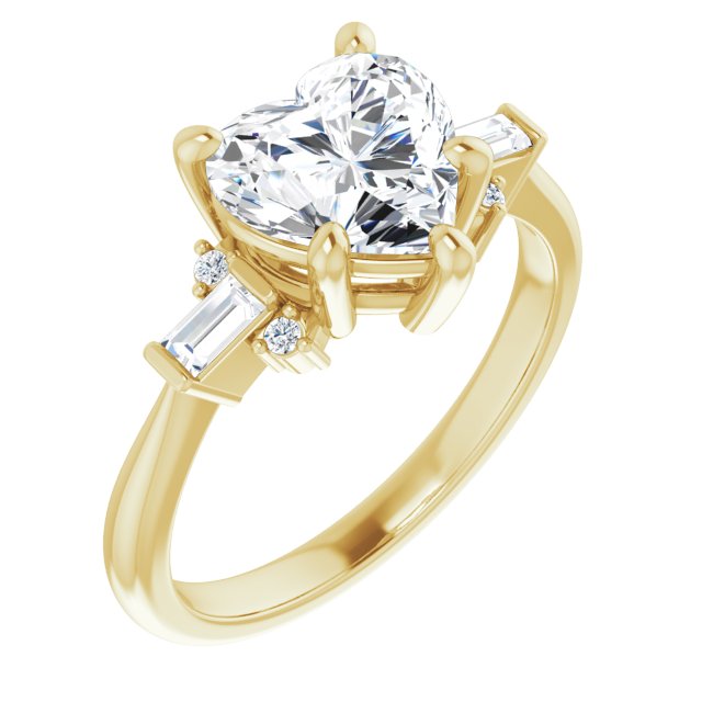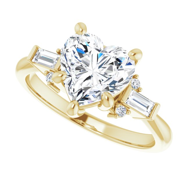 Kamila Women's Straight Baguette and Heart and Round Lab-Grown Diamond Accented Thin Engagement Ring | 14K Gold | VS1 | 2ct
