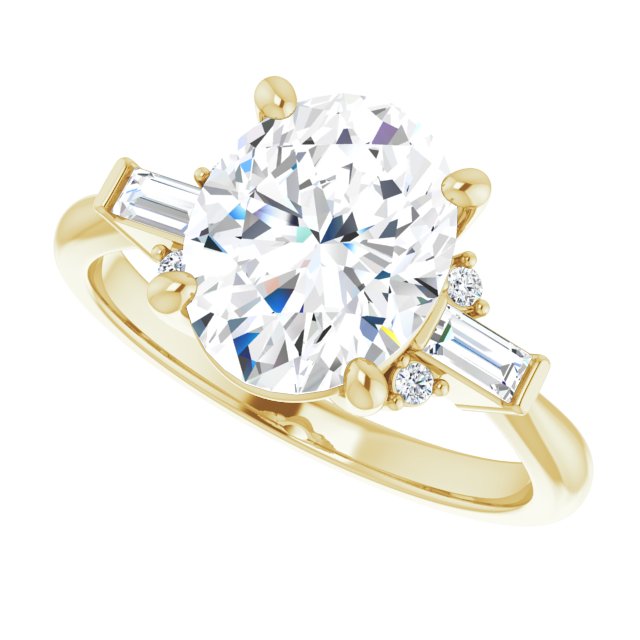 Kamila Women's Straight Baguette and Oval and Round Lab-Grown Diamond Accented Thin Engagement Ring | 14K Gold | VS1 | 3ct