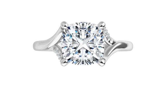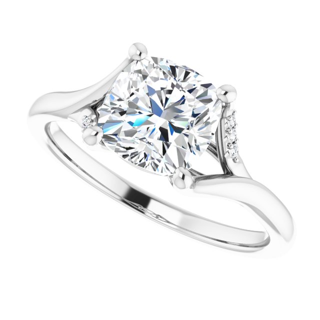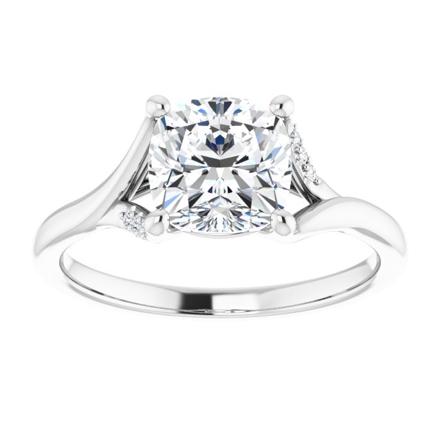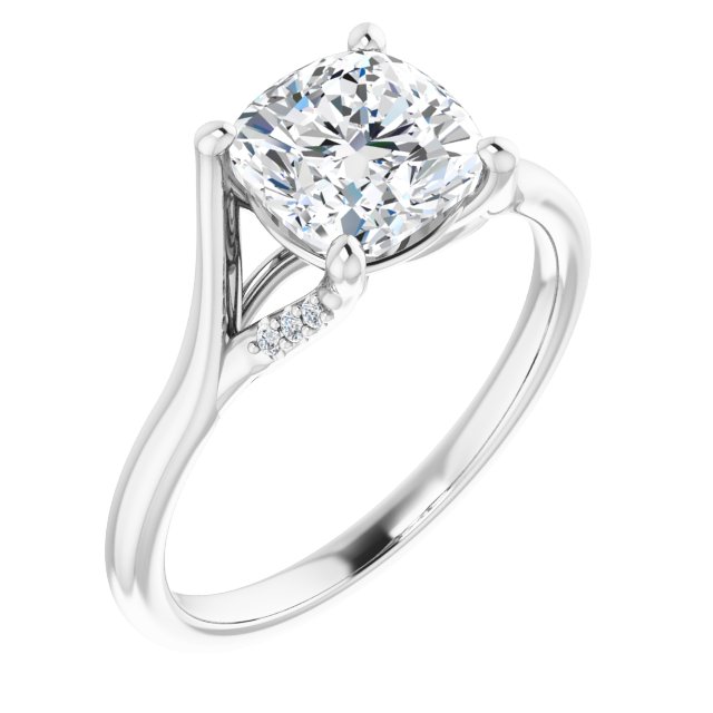 Katherine Women's 14K Gold Cushion and Round Cut Lab-Grown Diamond Accented Thin Engagement Ring | Prong Shared Set | 2ct
