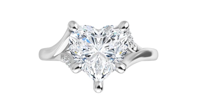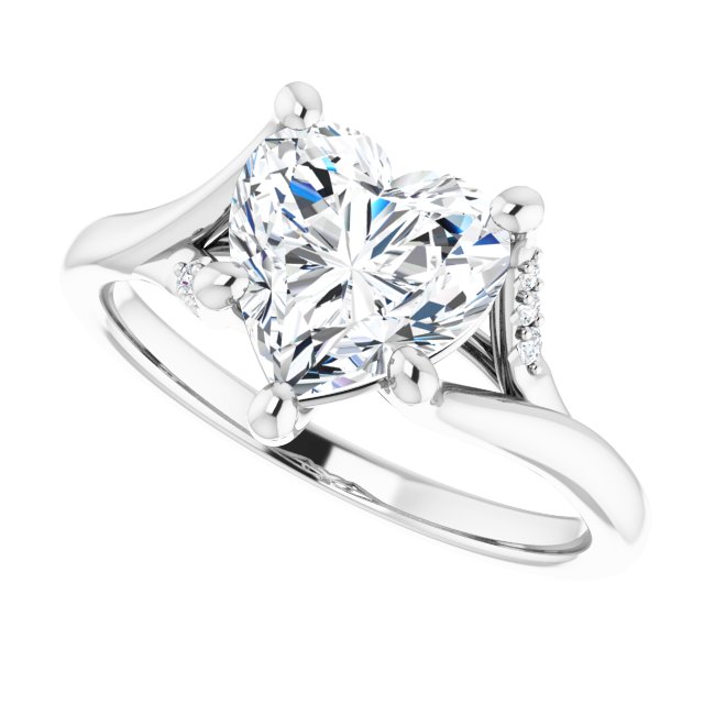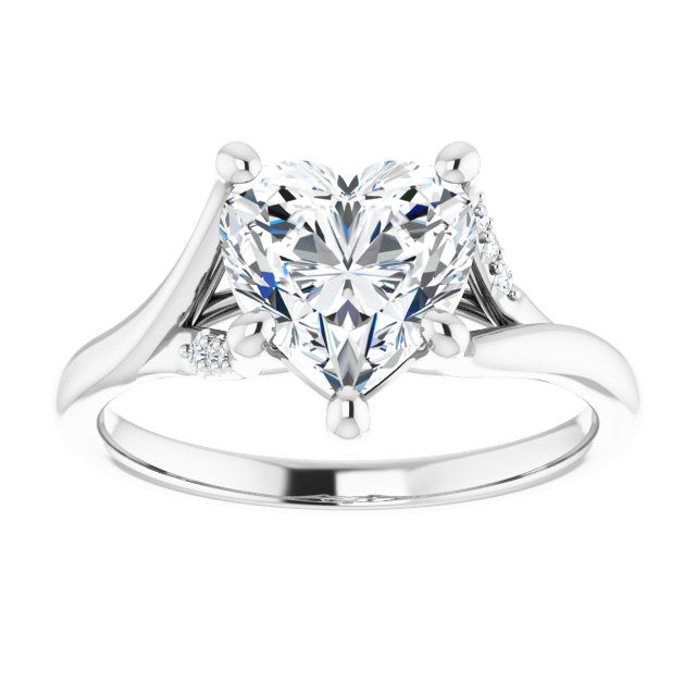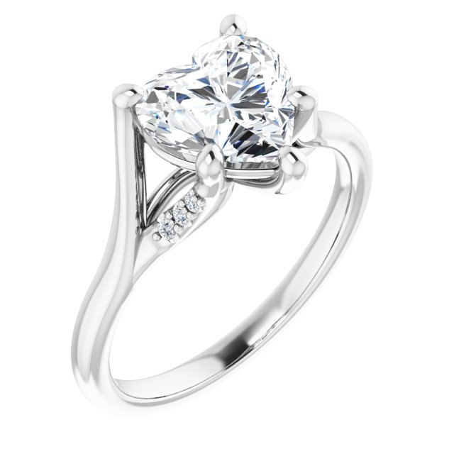 Katherine Women's 14K Gold Heart and Round Cut Lab-Grown Diamond Accented Thin Engagement Ring | Prong Shared Set | 2ct