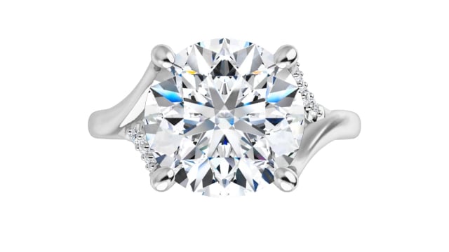 Katherine Women's 14K Gold Round Cut Lab-Grown Diamond Accented Thin Engagement Ring | Prong Shared Set | 3ct
