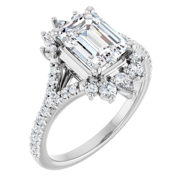 Kiara Women's 14K Gold Emerald and Pear and Round Cut Lab-Grown Diamond Accented Thin Engagement Ring | Prong Shared Set | 2ct
