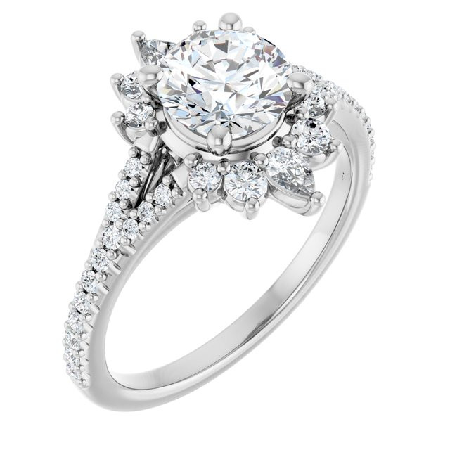 Kiara Women's 14K Gold Pear and Round Cut Natural Diamond Accented Thin Engagement Ring | Prong Shared Set | 1ct
