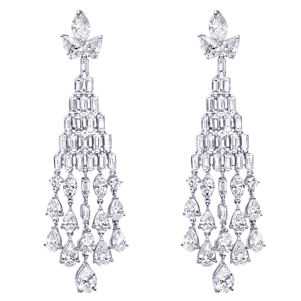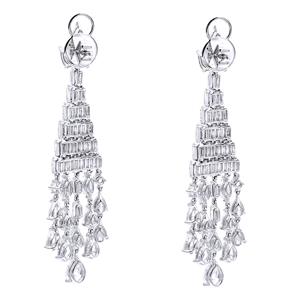 Ladies' Baguette Marquise Pear Round Diamond Hanging Chandelier Earrings | 14K Gold | 13ct