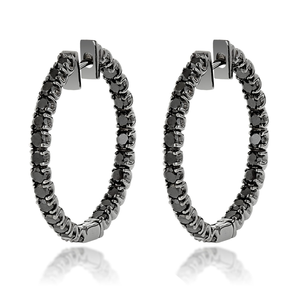 These Women's Diamond back earrings are made from 14k Gold, weigh 7 grams, and measure 2.5 mm in width. These Women's Diamond earrings feature 3.15 carats of Black Diamonds are available in 14k white gold, yellow gold and rose gold as well as 18k gold and platinum as a custom order.