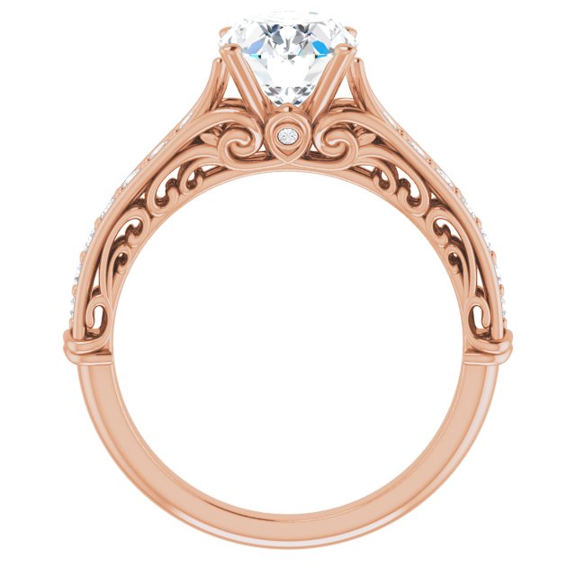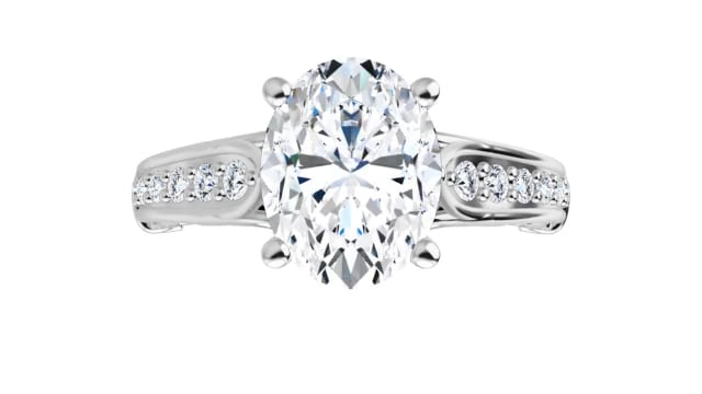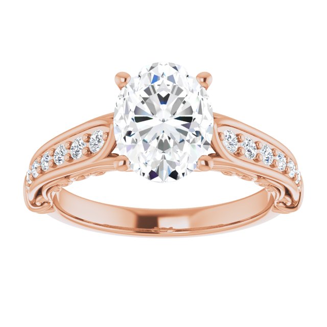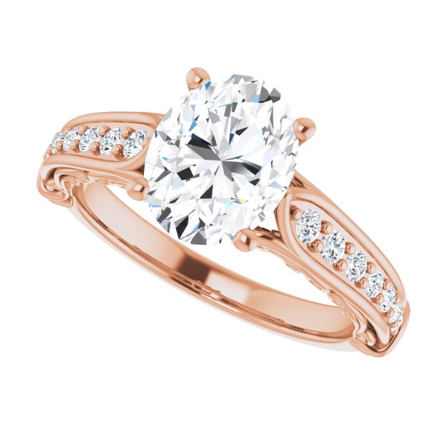 Lauren Women's 14K Gold Oval and Round Cut Lab-Grown Diamond Accented Engagement Ring | Prong Bezel Pinpoint Set | 2ct