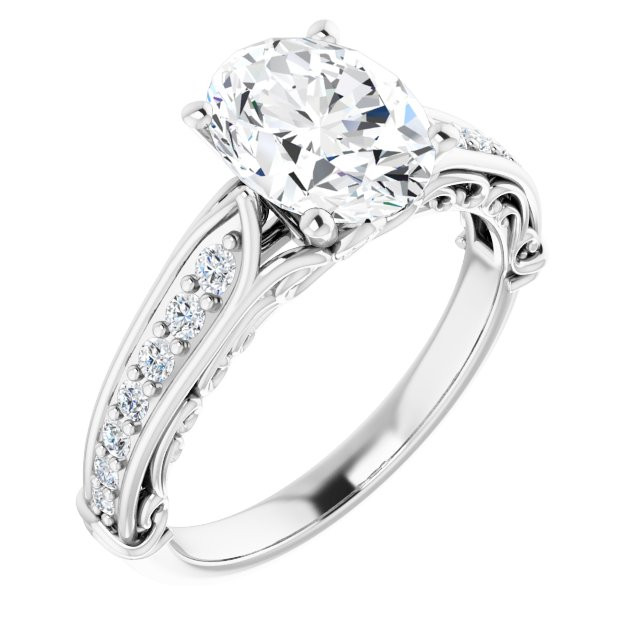 Lauren Women's 14K Gold Oval and Round Cut Lab-Grown Diamond Accented Engagement Ring | Prong Bezel Pinpoint Set | 2ct