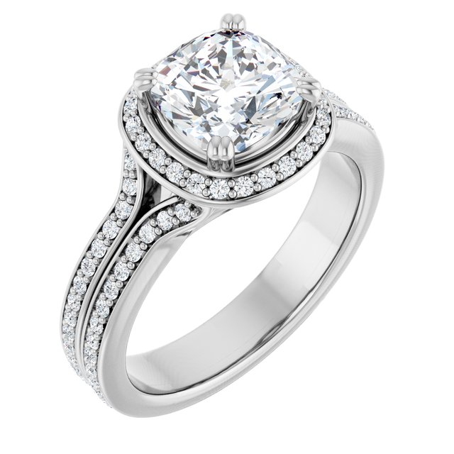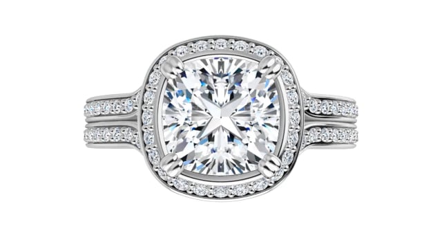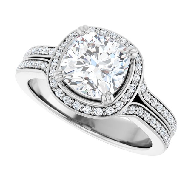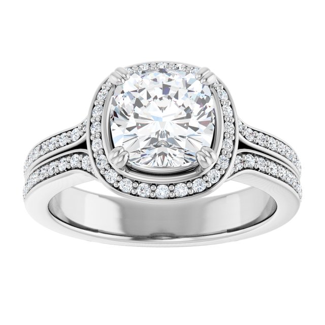 Layla Women's 14K Gold Cushion and Round Cut Lab-Grown Diamond Engagement Ring | Prong Pinpoint Set | 2ct