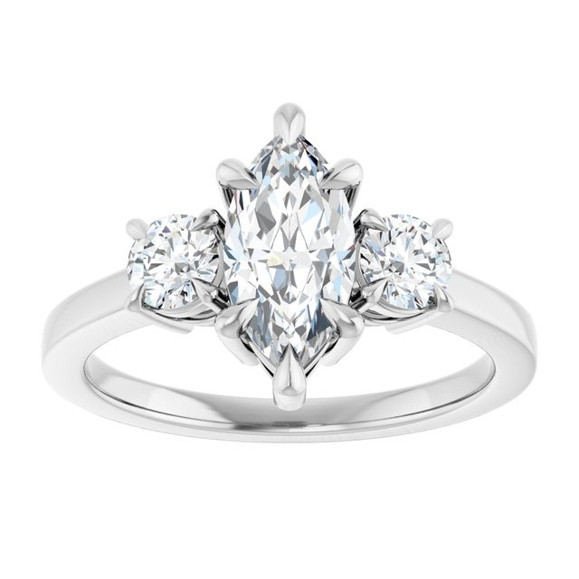 Leila Women's Marquise and Round Natural Diamond Thin Three-Stone Engagement Ring | 14K Gold | 1ct