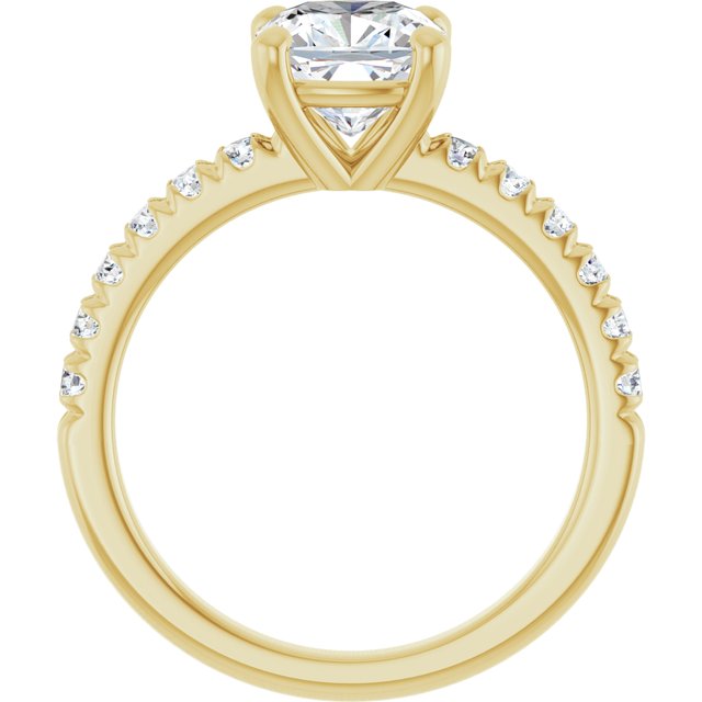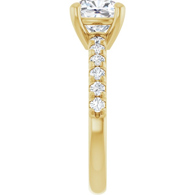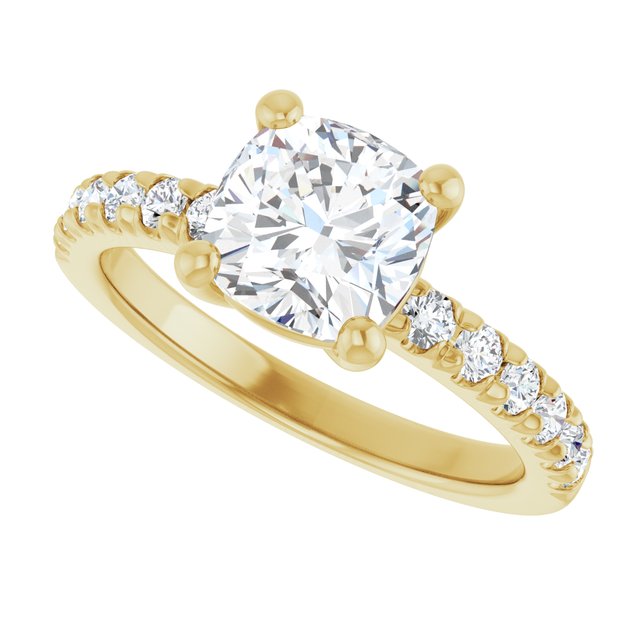 Lia Women's 14K Gold Cushion and Round Cut Lab-Grown Diamond Accented Thin Engagement Ring | Prong French Set Set | 2ct