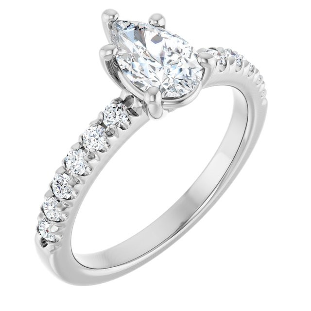 Lia Women's Pear and Round Natural Diamond Accented Thin Engagement Ring | 14K Gold | 1ct