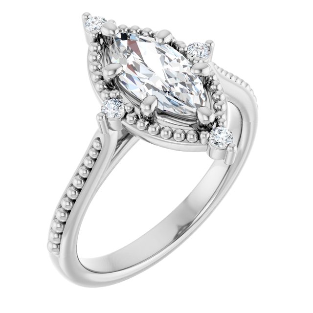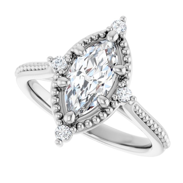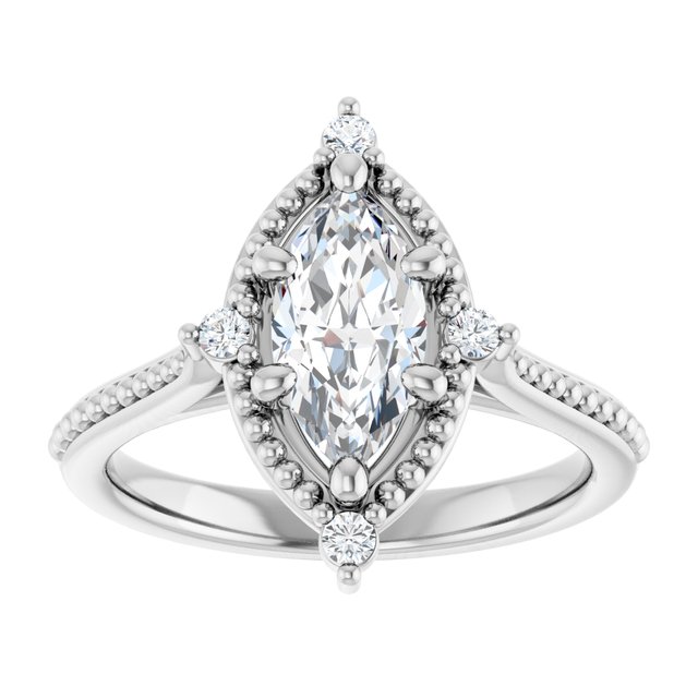 Lilah Women's 14K Gold Marquise and Round Cut Natural Diamond Accented Thin Engagement Ring | Prong Set | 1ct