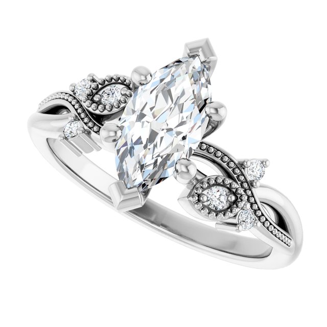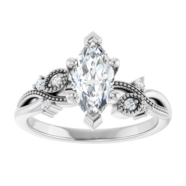 Lilly Women's 14K Gold Marquise and Round Cut Natural Diamond Accented Thin Engagement Ring | Prong Pinpoint Set | 1ct