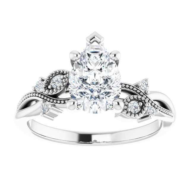 Lilly Women's 14K Gold Pear and Round Cut Lab-Grown Diamond Accented Thin Engagement Ring | Prong Pinpoint Set | 2ct
