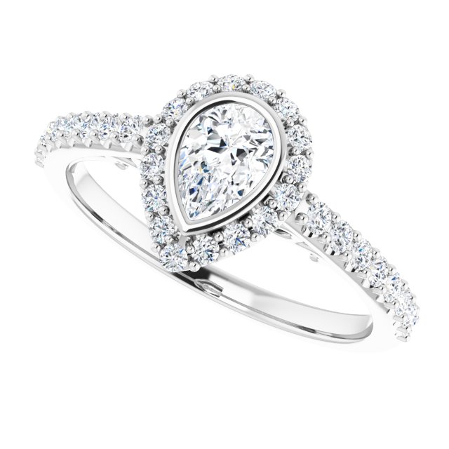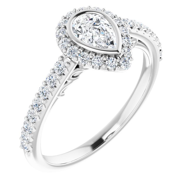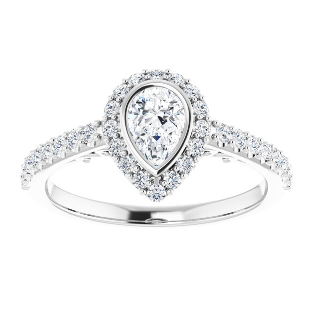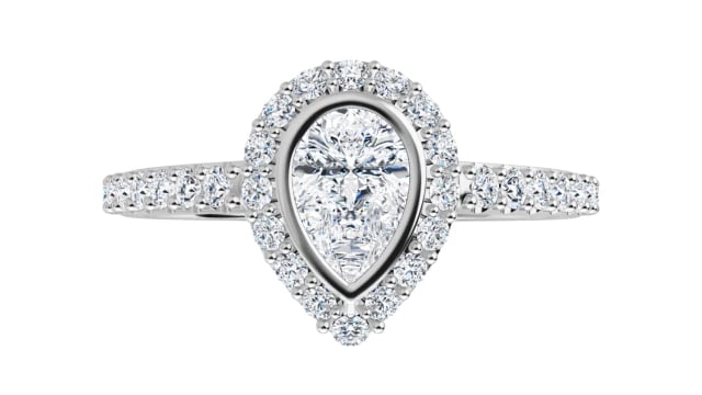 Lucia Women's 14K Gold Pear and Round Cut Natural Diamond Thin Engagement Ring | Bezel Shared Prong Set