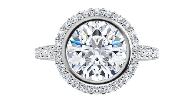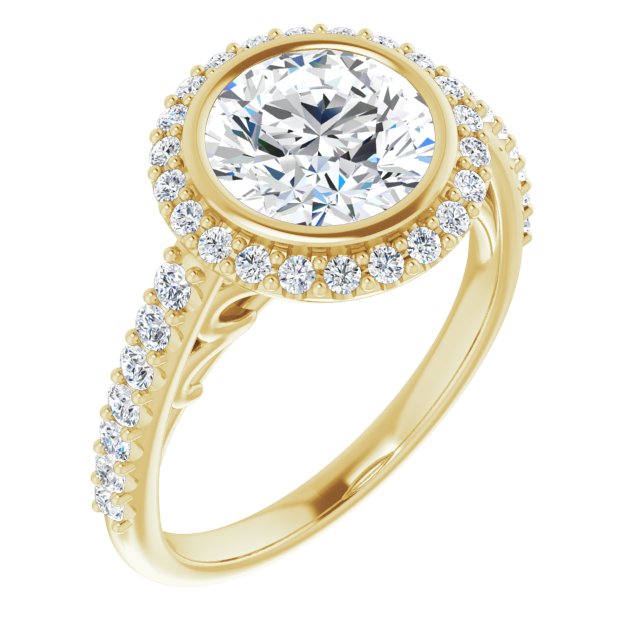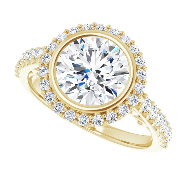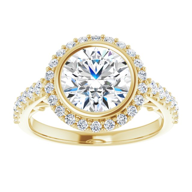 Lucia Women's 14K Gold Round Cut Lab-Grown Diamond Engagement Ring | Bezel Shared Prong Set | 2ct