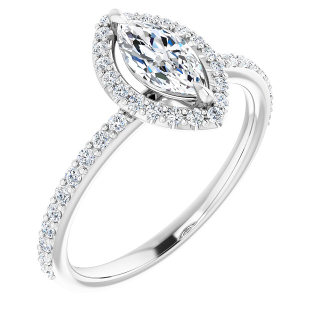 Lyla Women's Marquise and Round Natural Diamond Halo Engagement Ring | 14K Gold