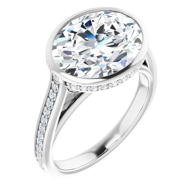 Madison Women's 14K Gold Oval and Round Cut Lab-Grown Diamond Engagement Ring | Bezel Pinpoint Set | 5ct