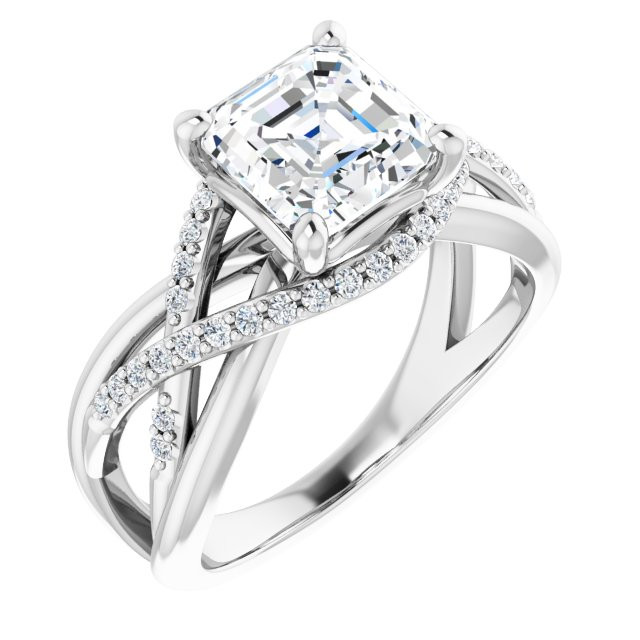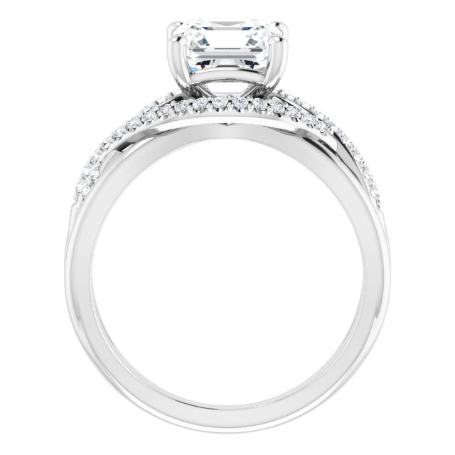 Margot Women's 14K Gold Asscher and Round Cut Natural Diamond Accented Thin Engagement Ring | Prong Shared Set | 2ct