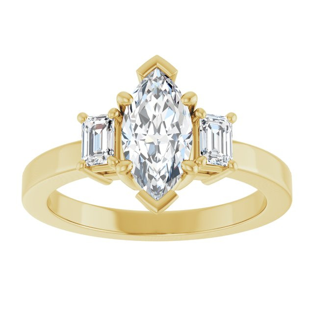 Marley Women's 14K Gold Emerald and Marquise Cut Natural Diamond Thin Three-Stone Engagement Ring | Prong Set | 1ct