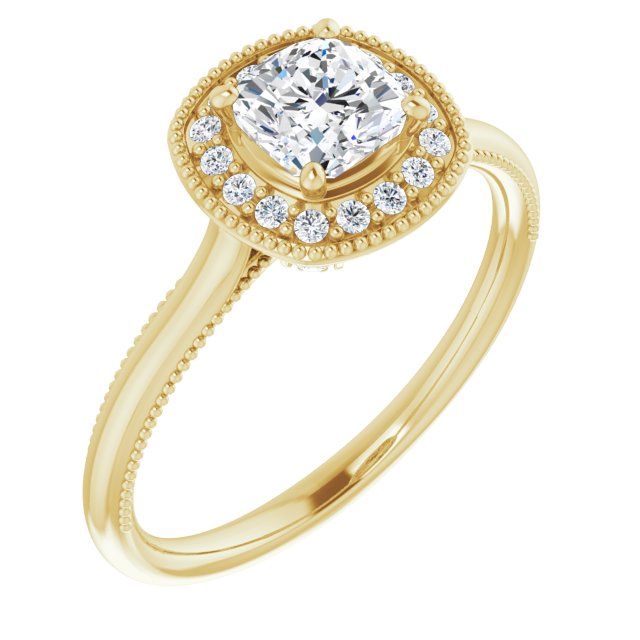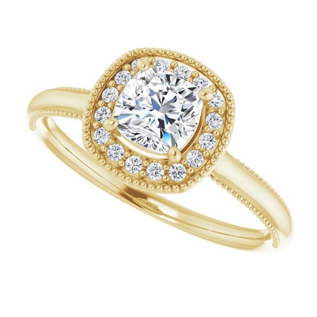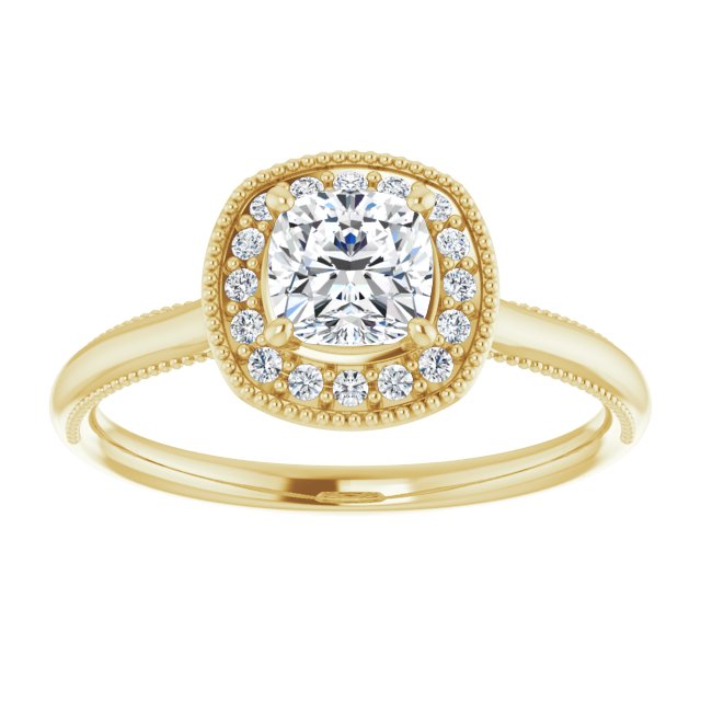 Melody Women's Cushion and Round Natural Diamond Halo Engagement Ring | 14K Gold