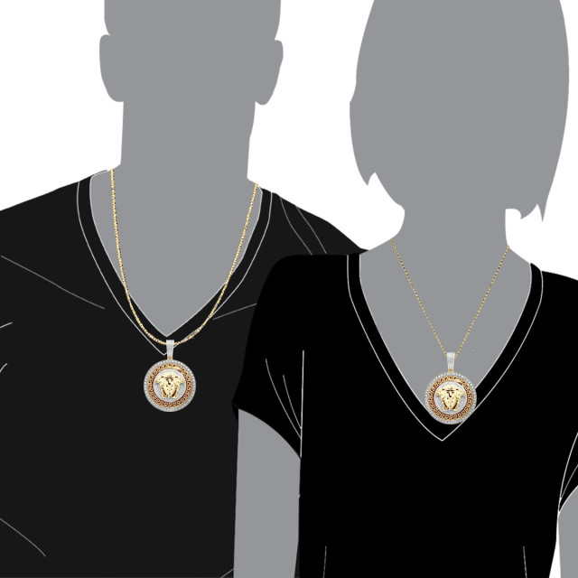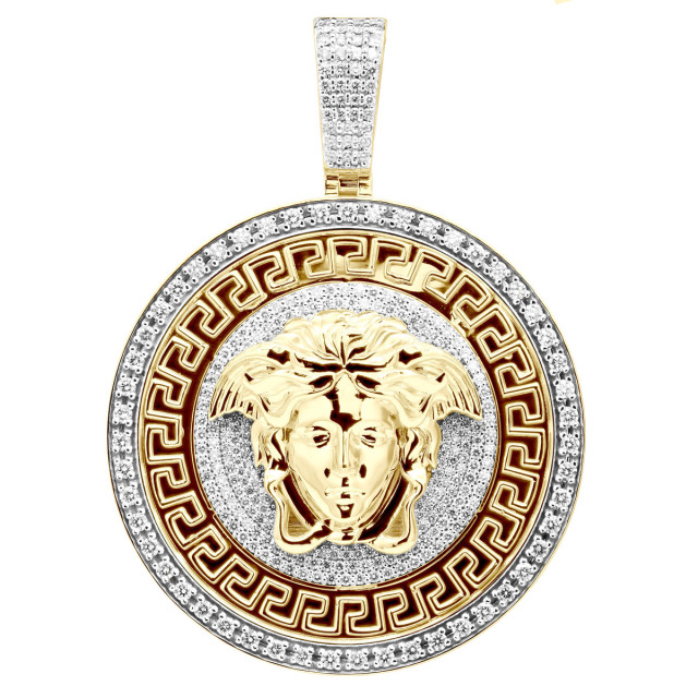 Men's 10K Gold Diamond Medusa Head Pendant | Round Medallion | 8ct