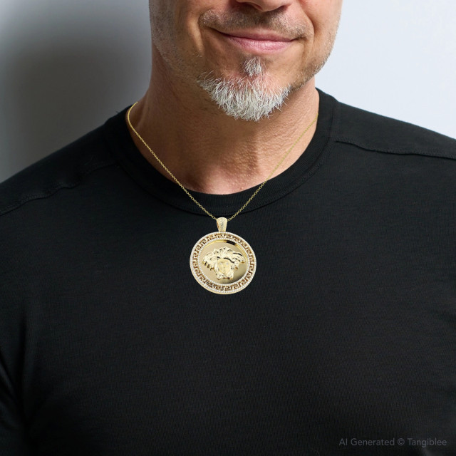 Men's 10K Gold Diamond Medusa Head Pendant | Versace Style Round Medallion | 1.86ct