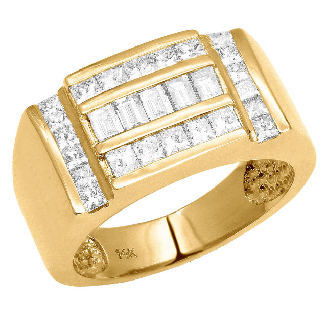 Men's 14K Gold Baguette and Princess Cut Diamond Ring | Channel Set | 1.85ct