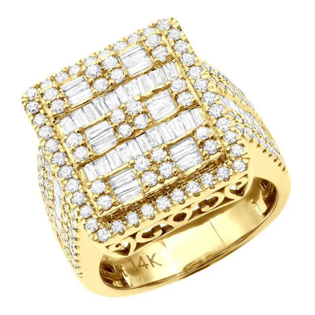 Men's 14K Gold Baguette and Round Cut Diamond Signet Pinky Ring | Prong Set | 3.5ct