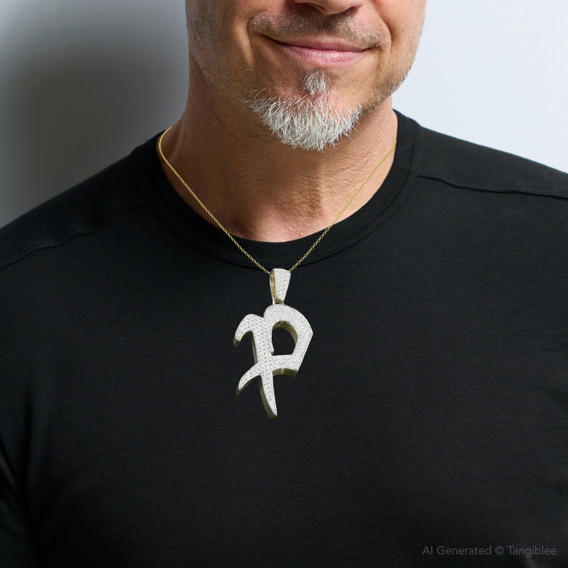 Men's 14K Gold Diamond Initial Pendant | 4.95ct
