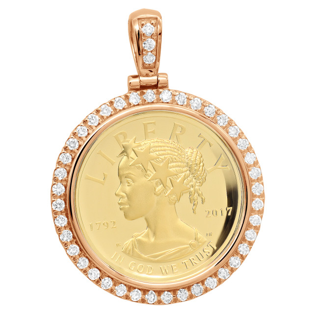 Men's 14K Gold Diamond US Mint American Liberty 1oz Coin Pendant | Round Medallion | 2ct