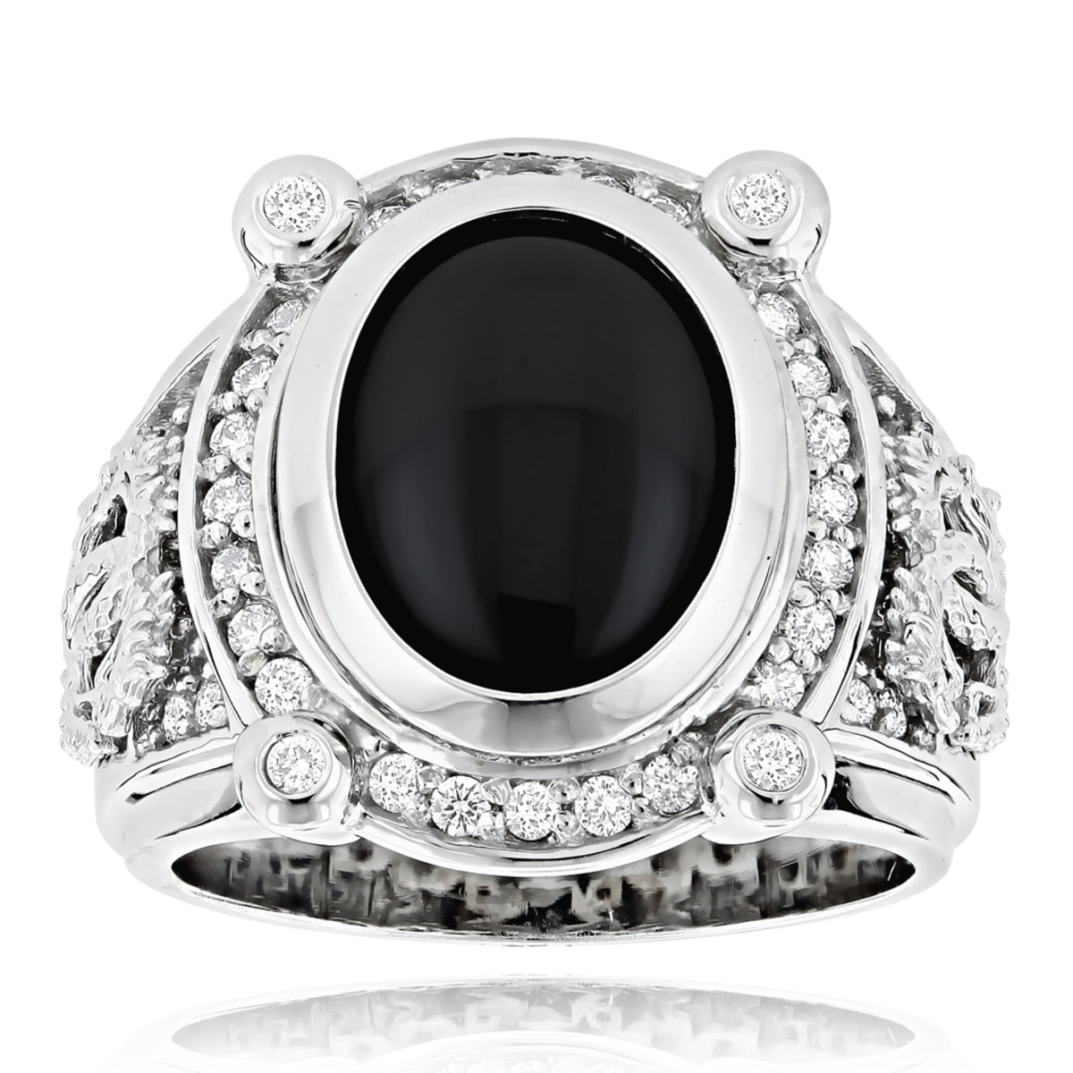 Men's 14K Gold Onyx Diamond Bezel Ring 0.65ct