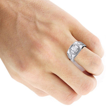 This Men's Diamond Birthstone ring is made from 14k Gold, weighing 13.5 grams. This Men's Diamond ring features 2 carats of White Diamonds and is available in 14k white gold, yellow gold and rose gold as well as 18k gold and platinum as a custom order.