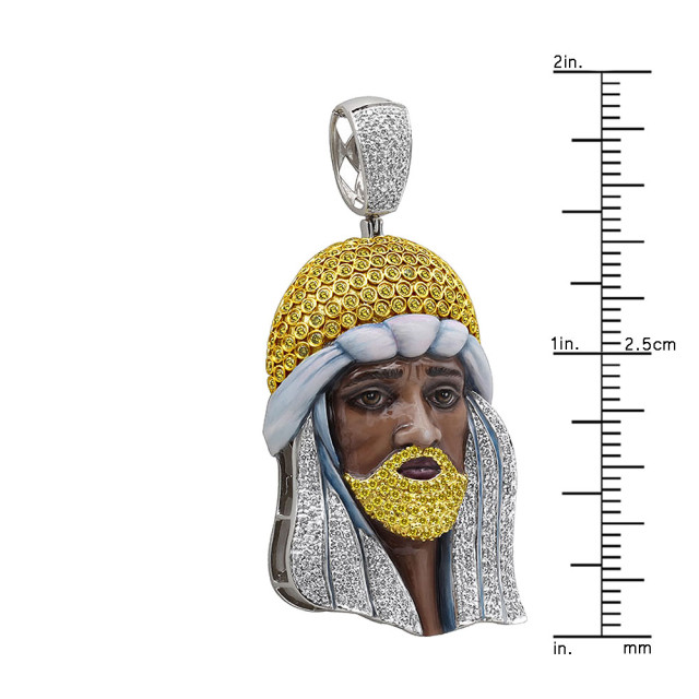 Men's 14K Gold White Yellow Diamond Jesus Face Pendant | 10.5ct