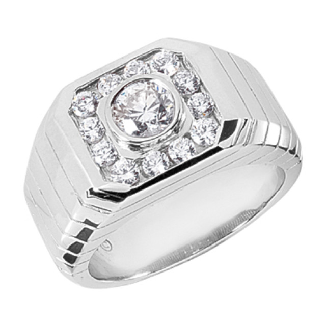 This Men's Diamond Birthstone ring is made from 18k Gold, weighing 17 grams. This Men's Diamond ring features 1.28 carats of White Diamonds and is available in 18k white gold, yellow gold and rose gold as well as 18k gold and platinum as a custom order.