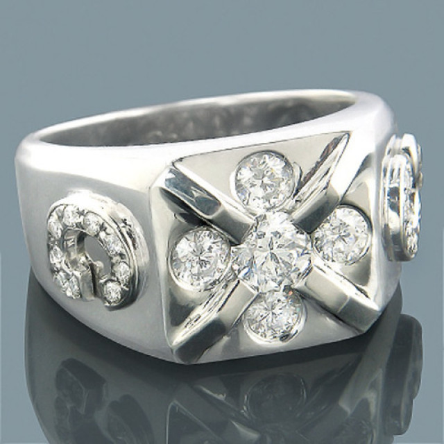 This Men's Diamond Unique ring is made from 18k Gold, weighing 17 grams. This Men's Diamond ring features 1.71 carats of White Diamonds and is available in 18k white gold, yellow gold and rose gold as well as 18k gold and platinum as a custom order.